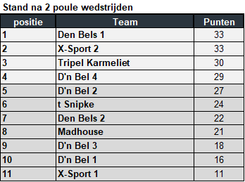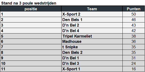 We zijn dit jaar met 11 teams dus we hebben het format toch een klein beetje aan moeten passen om tot een eerlijke puntentelling te komen.